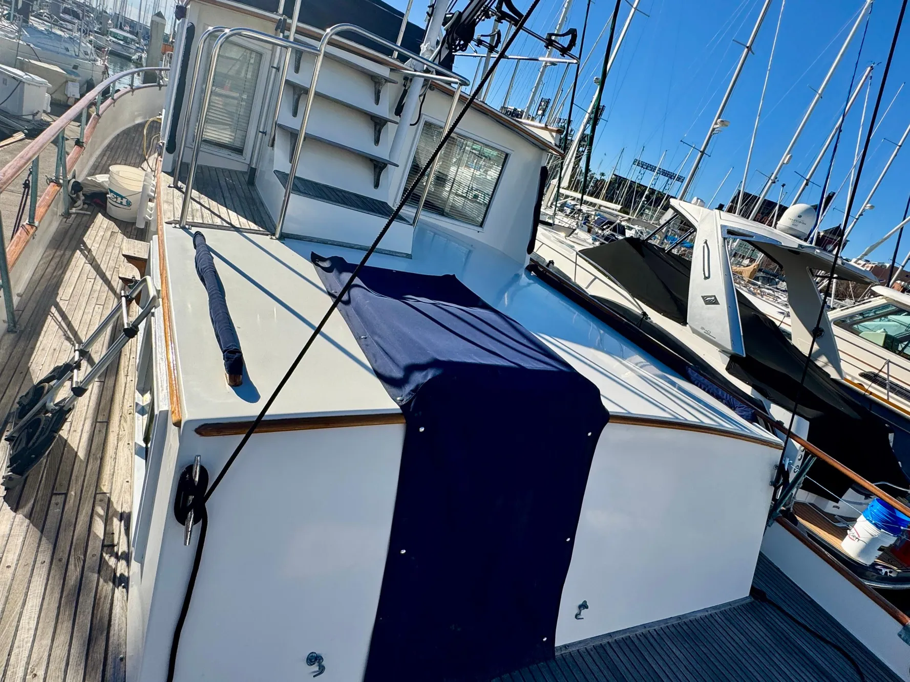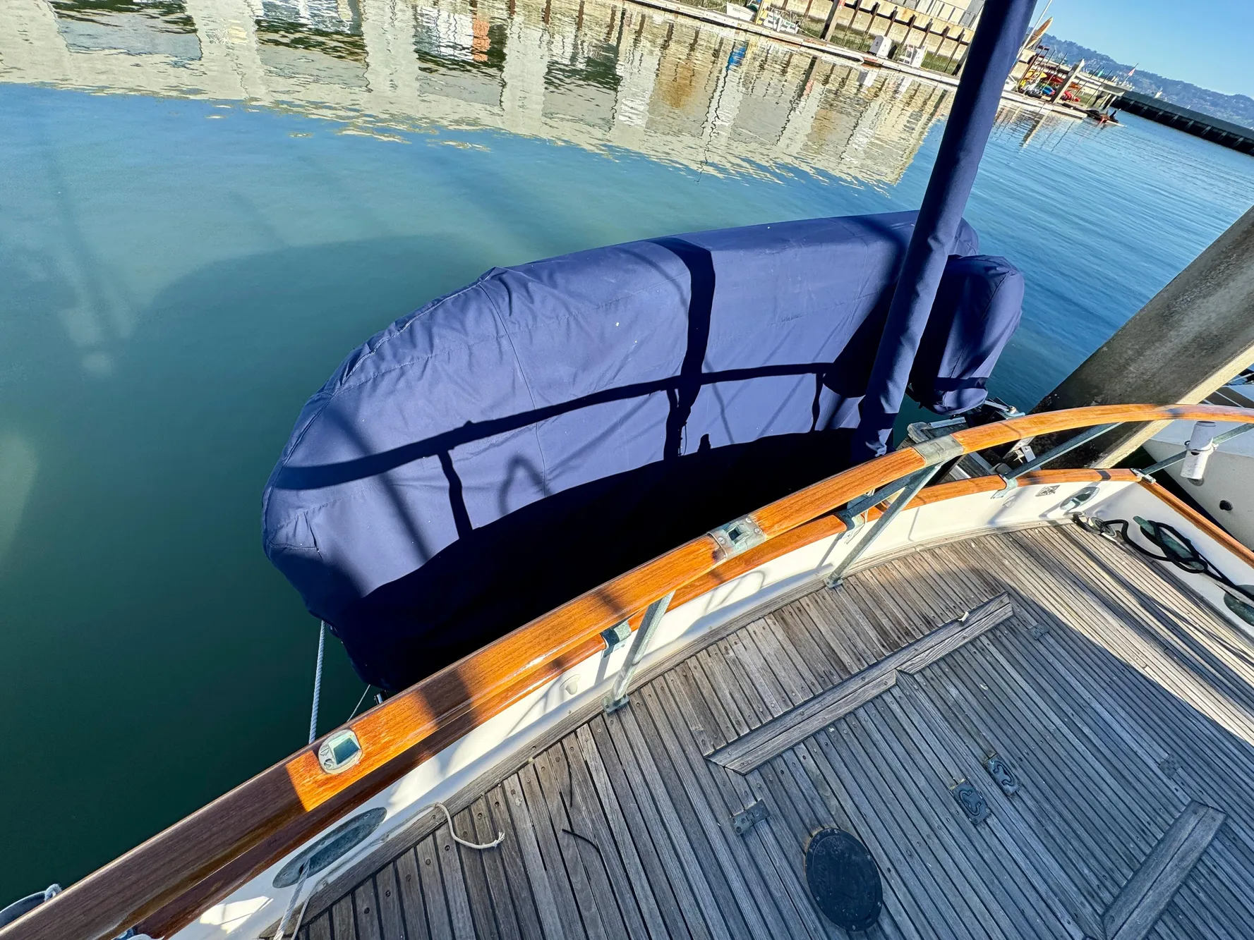 Lovely teak & brass handrails throughout.