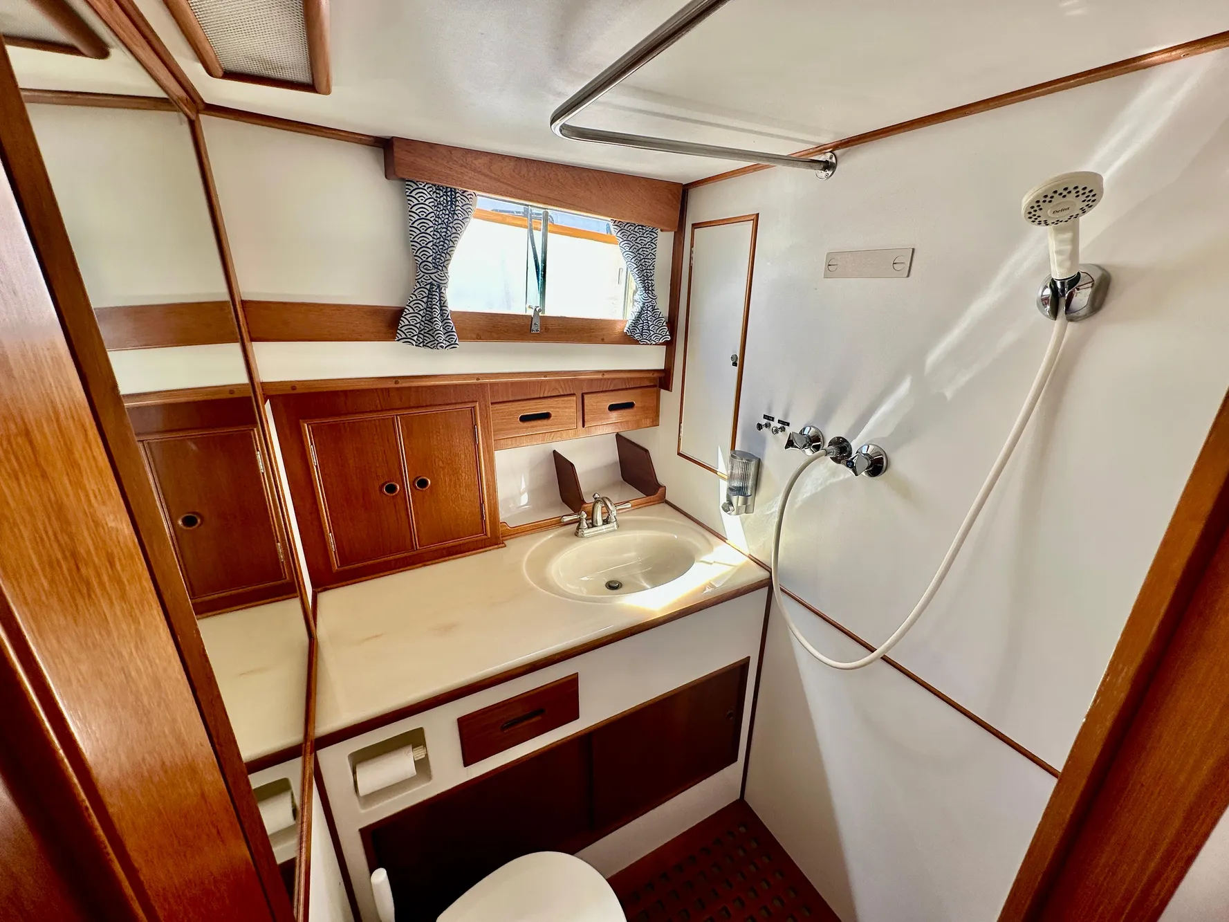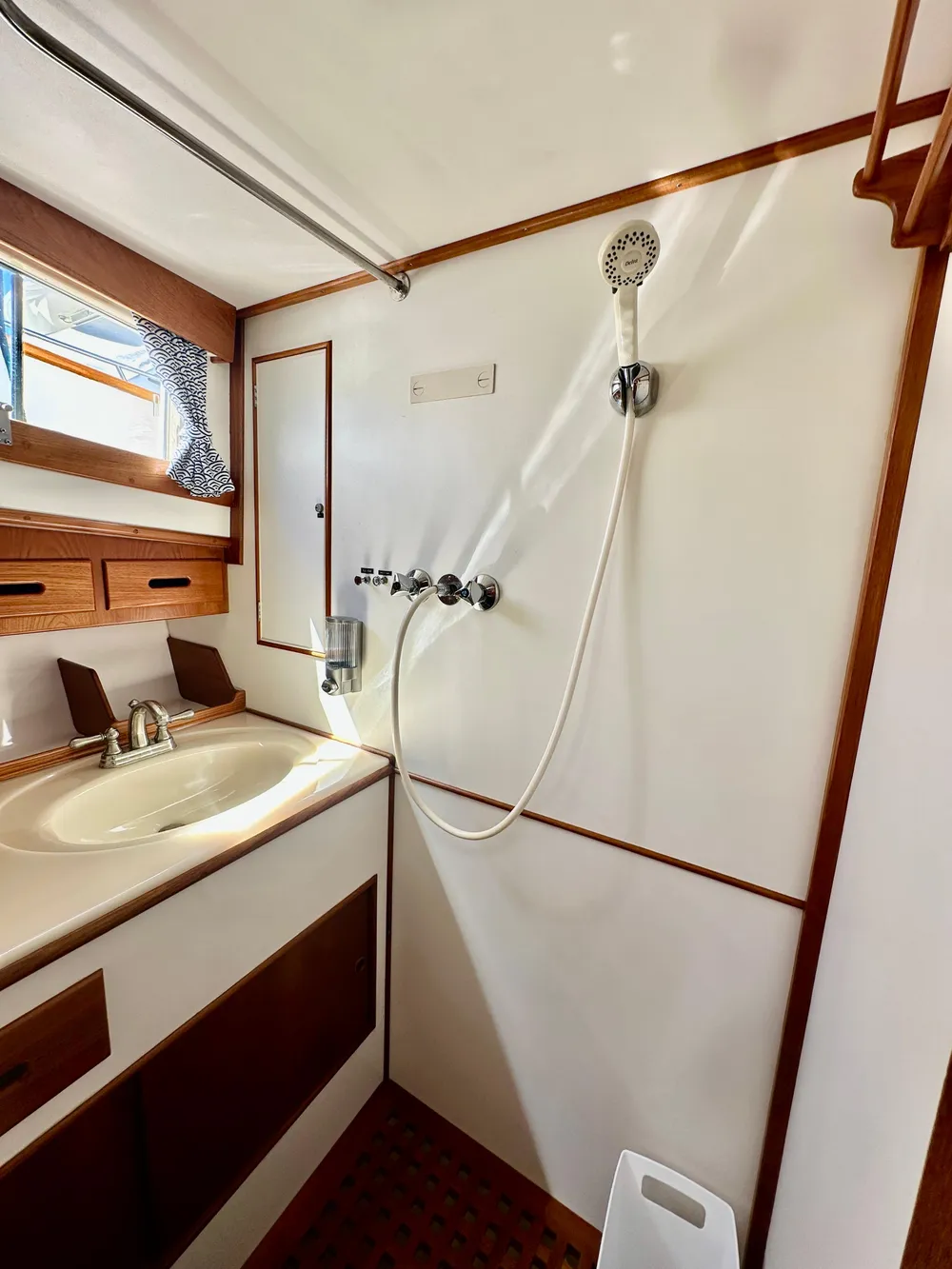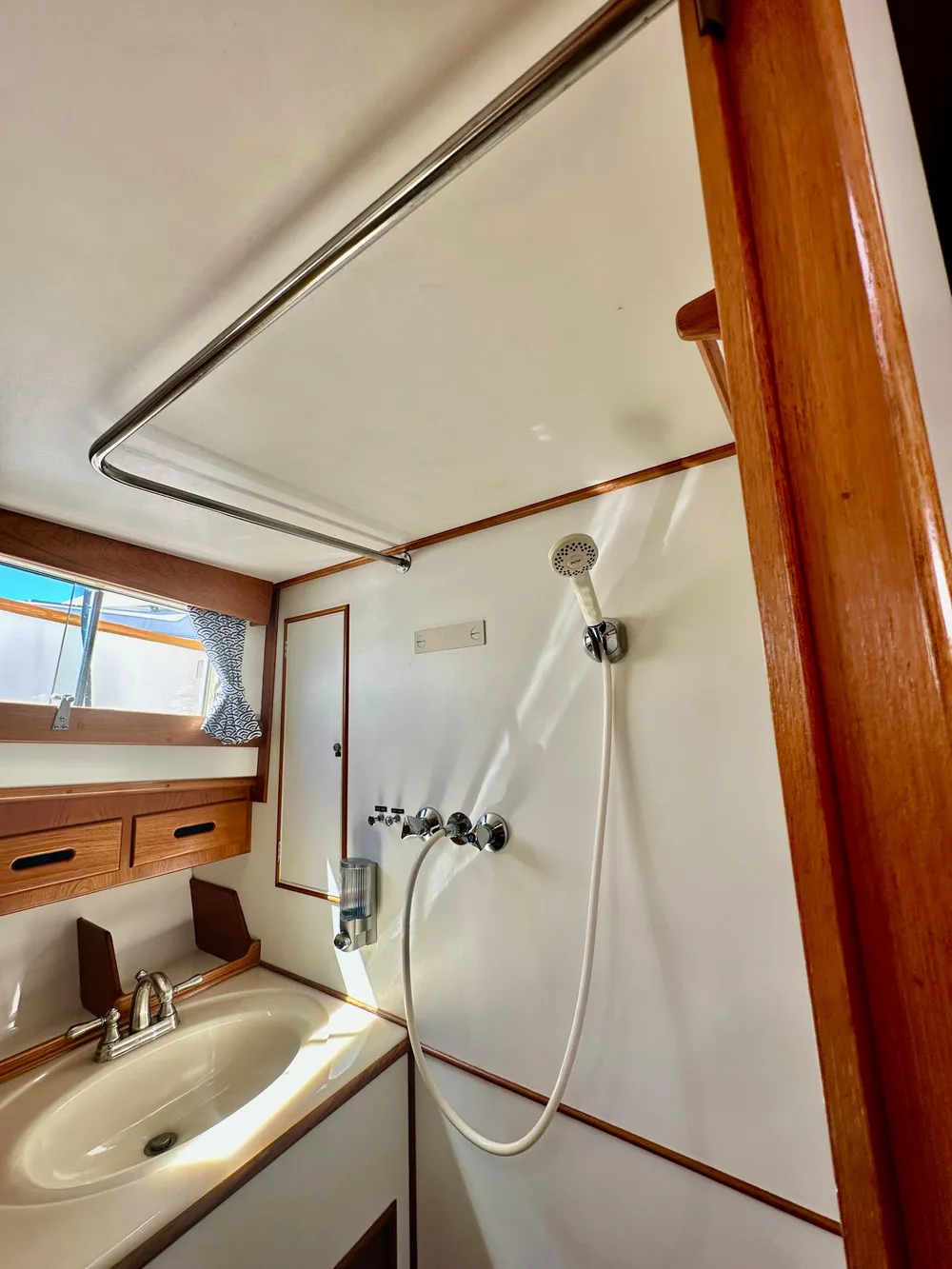 - Transom shower with upgraded fixtures