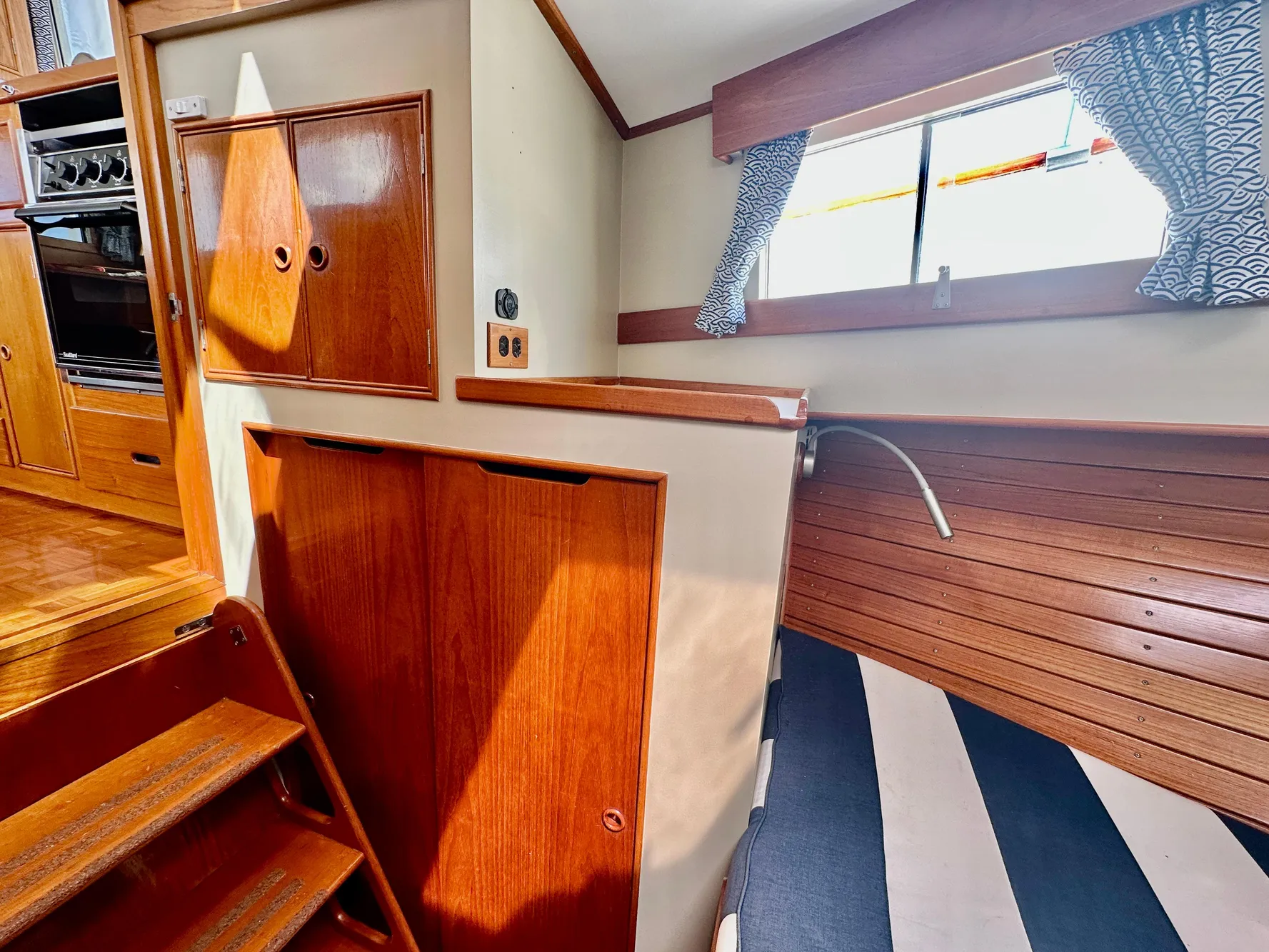 - Port settee with storage (converts to single berth)