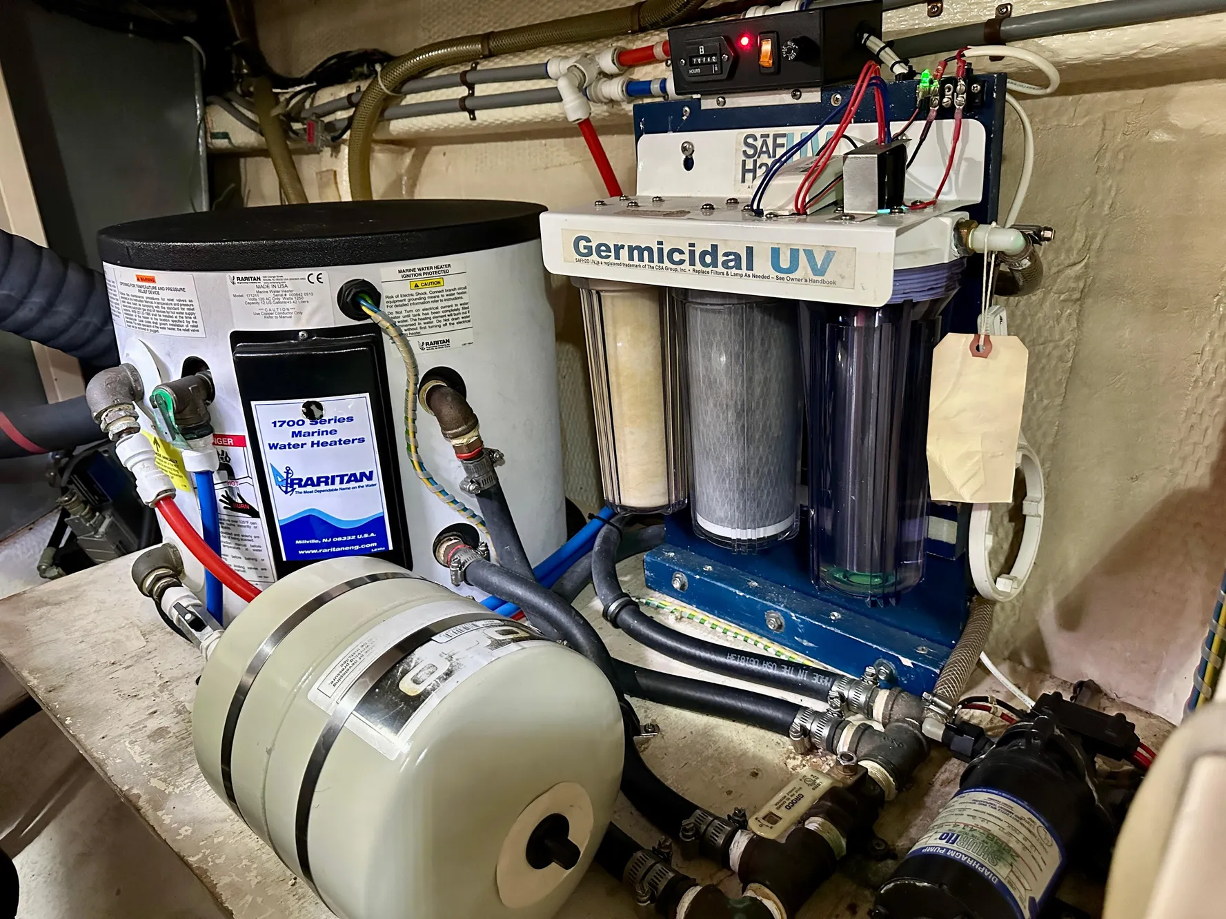 - Fresh water 3 stage UV water filter/germicidal system (water to all fixtures)