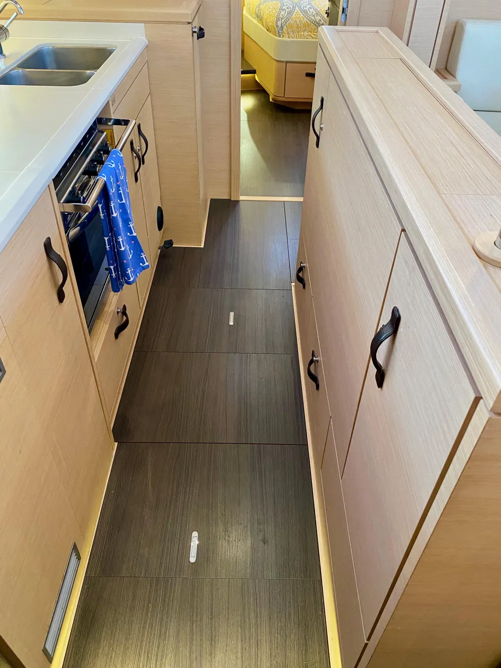 • Leather handles for forward cabin door